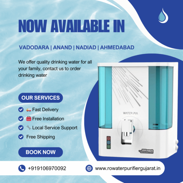 At RO Water Purifier Gujarat, based in Vadodara, we are committed to delivering safe and pure drinking water. We provide RO Water Purifier systems, installation, repair services, and filter replacements. We serve Vadodara, Ahmedabad, Anand, Nadiad, and ship our products across India.